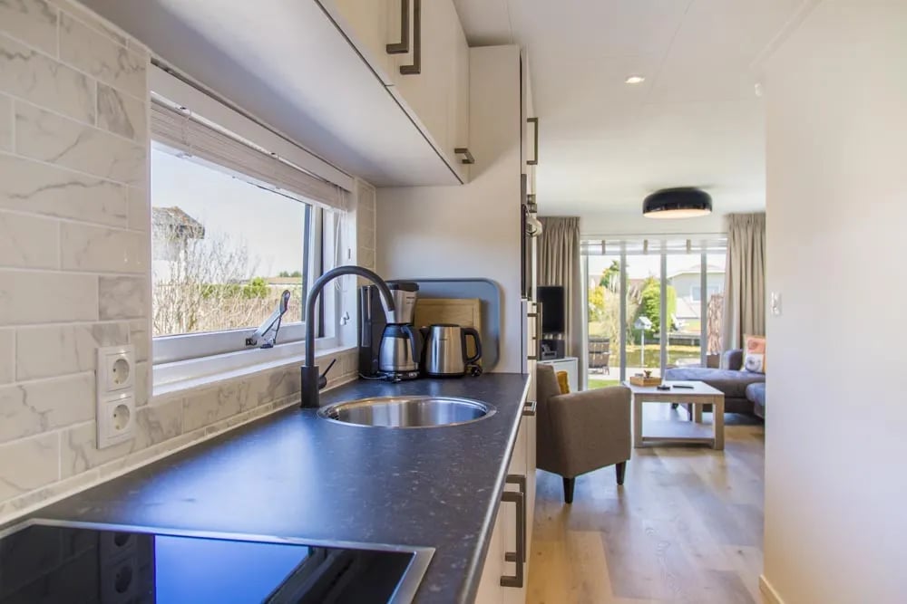 - Luxe Chalets: Enjoy the comforts of luxury in modern chalets equipped with a cozy living area, private bathroom, fully equipped kitchen, and large terrace overlooking tranquil gardens, some even adjacent to a pond.