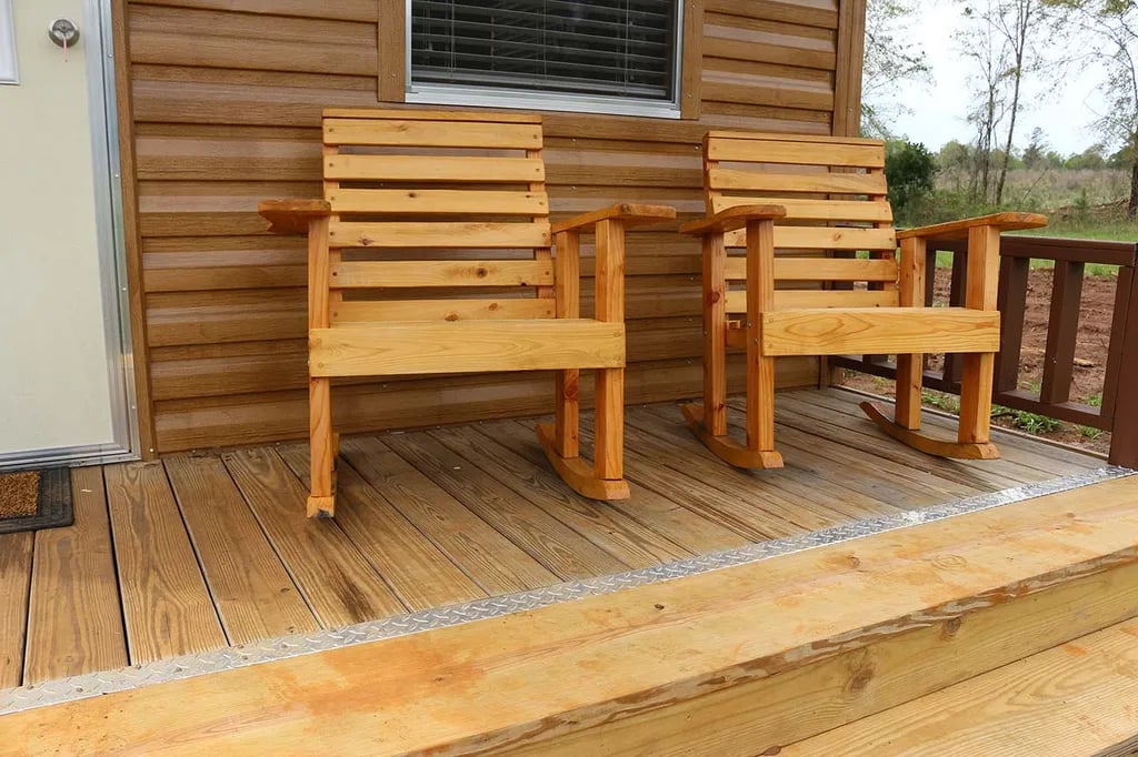 - Cabins for Overnight Stays: Each cabin is equipped with air conditioning, ceiling fans, and modern conveniences such as a flat-screen TV, a miniature refrigerator, and a Keurig coffee maker. Perfect for family cookouts, each cabin also has a front porch with rocking chairs and a small grill.