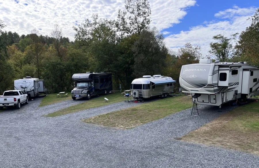 - Full Hook-Up RV Sites: Each RV site is equipped with sewer hook-up, ensuring a comfortable stay for all campers. A dump station is available upon request for added convenience.