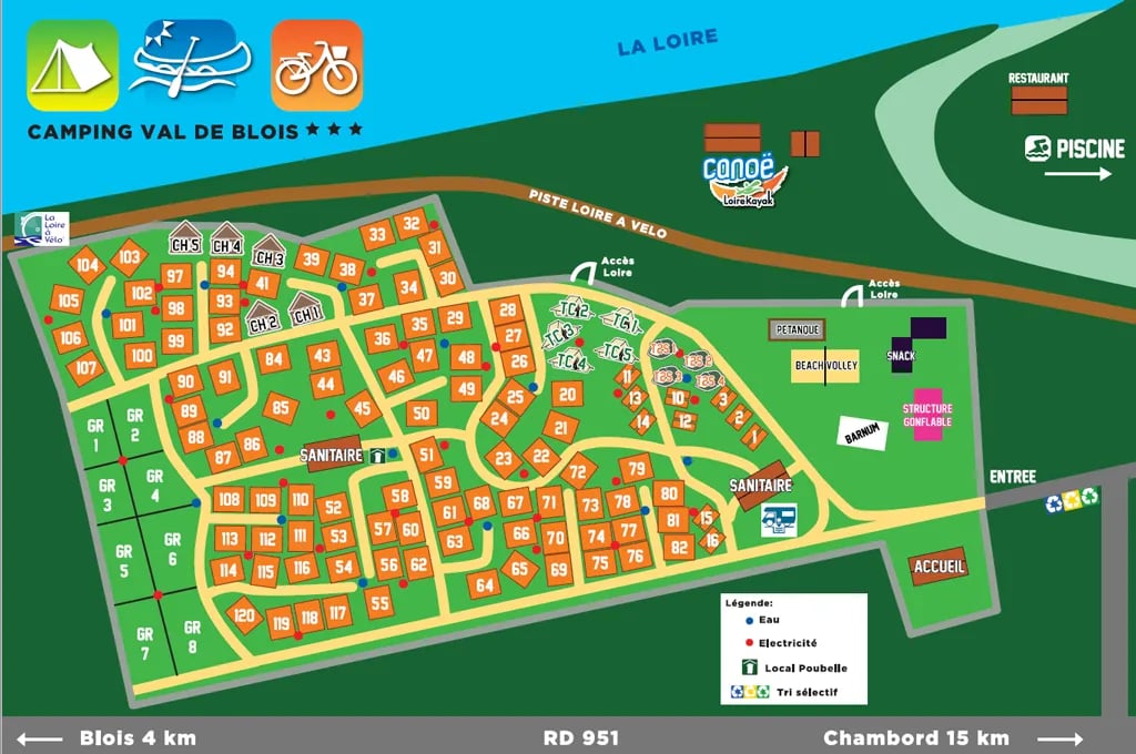 Die Anreise zum Camping Val de Blois ist einfach, egal ob Sie aus nahegelegenen Städten kommen oder entlang von Radwegen unterwegs sind: