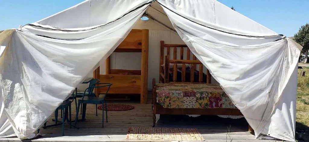 - Luxury Tents: Experience camping in style with our luxury tents featuring heavy-duty canvas over a redwood deck, complete with screened windows and mesh doors to enjoy the outdoors comfortably.