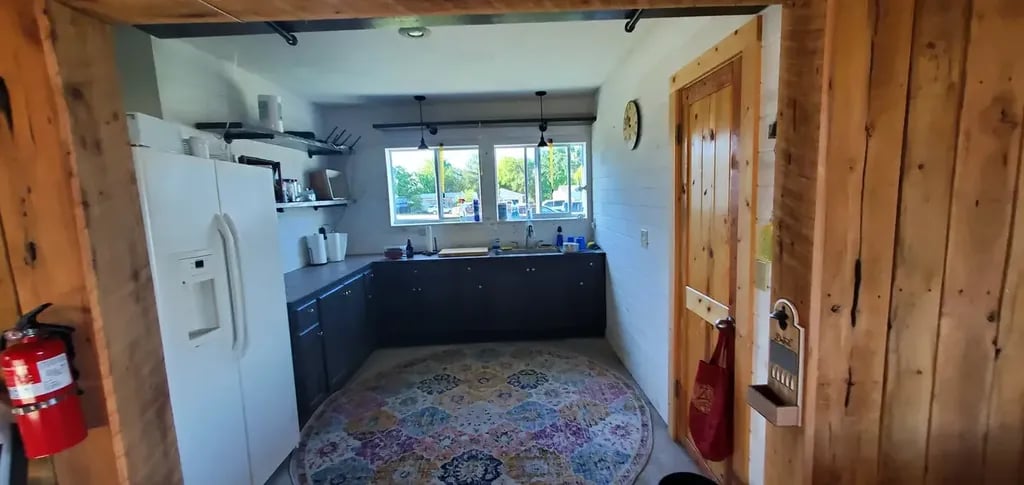 - Public Kitchen: Fully stocked with utensils, a refrigerator, and a microwave, allowing for easy meal preparation. Guests can enjoy their meals on the large covered patio or around the community BBQ grill.
