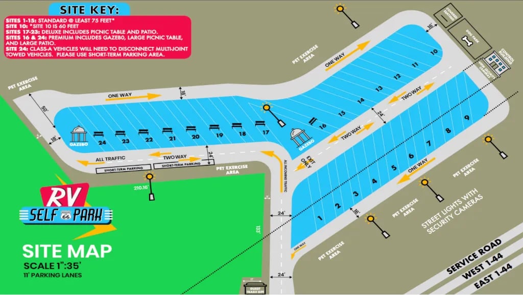 Welcome to RV Self-Park, America’s first automated RV parking facility, strategically located in Sullivan, Missouri. Perfectly positioned just off I-44 and Historic Route 66, this campground is an ideal stop for travelers journeying east or west through central Missouri. Whether you’re looking for an overnight stop or an extended stay, RV Self-Park offers convenience, security, and essential amenities, making it a great choice for all RV enthusiasts.