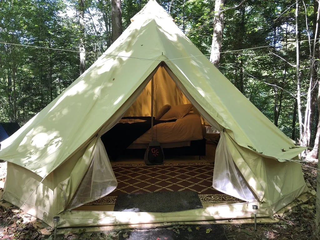 - Bell Glamping Tents: Experience glamping in furnished canvas tents, complete with queen air mattresses, memory foam toppers, and linens. The tents come with LED lighting, fire pits, and basic cooking utensils.
