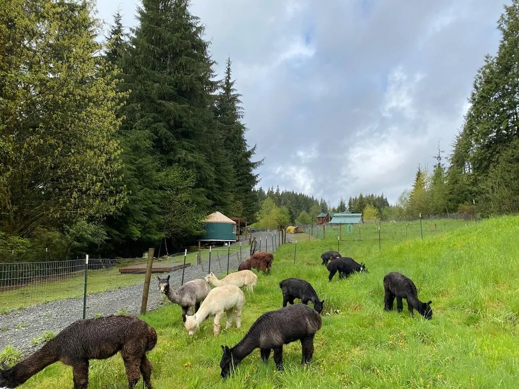 Situated along the historic gold rush Robe Valley on the scenic Mountain Loop Highway, just 55 miles from downtown Seattle, Paca Pride Guest Ranch offers a unique camping experience infused with rustic charm and modern comforts. Nestled amidst lush meadows and forests, this working ranch is perfect for families, outdoor enthusiasts, and anyone looking to reconnect with nature while enjoying the luxury of alpaca accommodations.