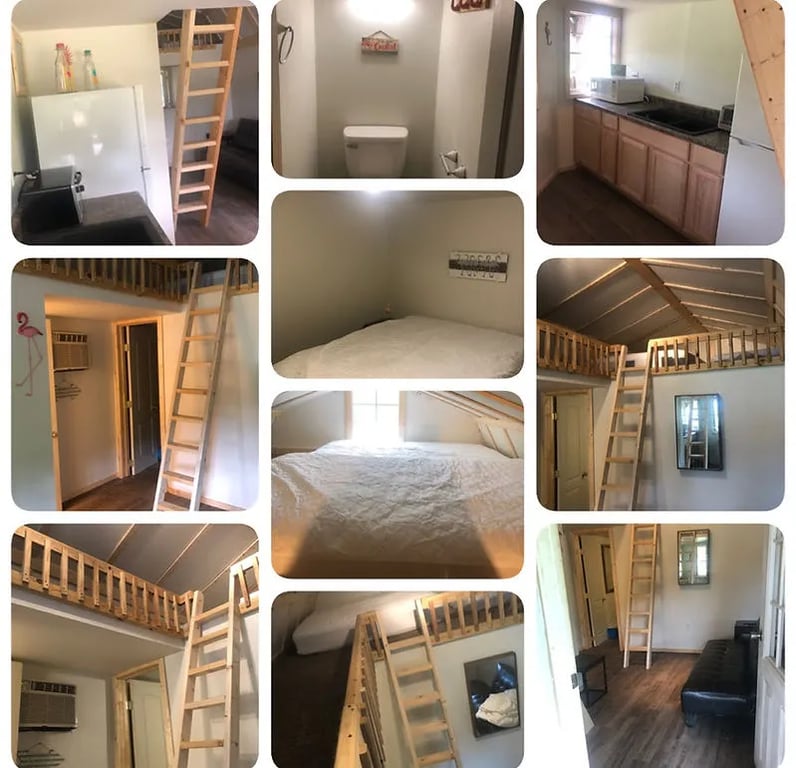 - Two Bed Loft Cabins: Spacious option with room for larger groups, featuring a queen bed, a king bed, and ample living space.